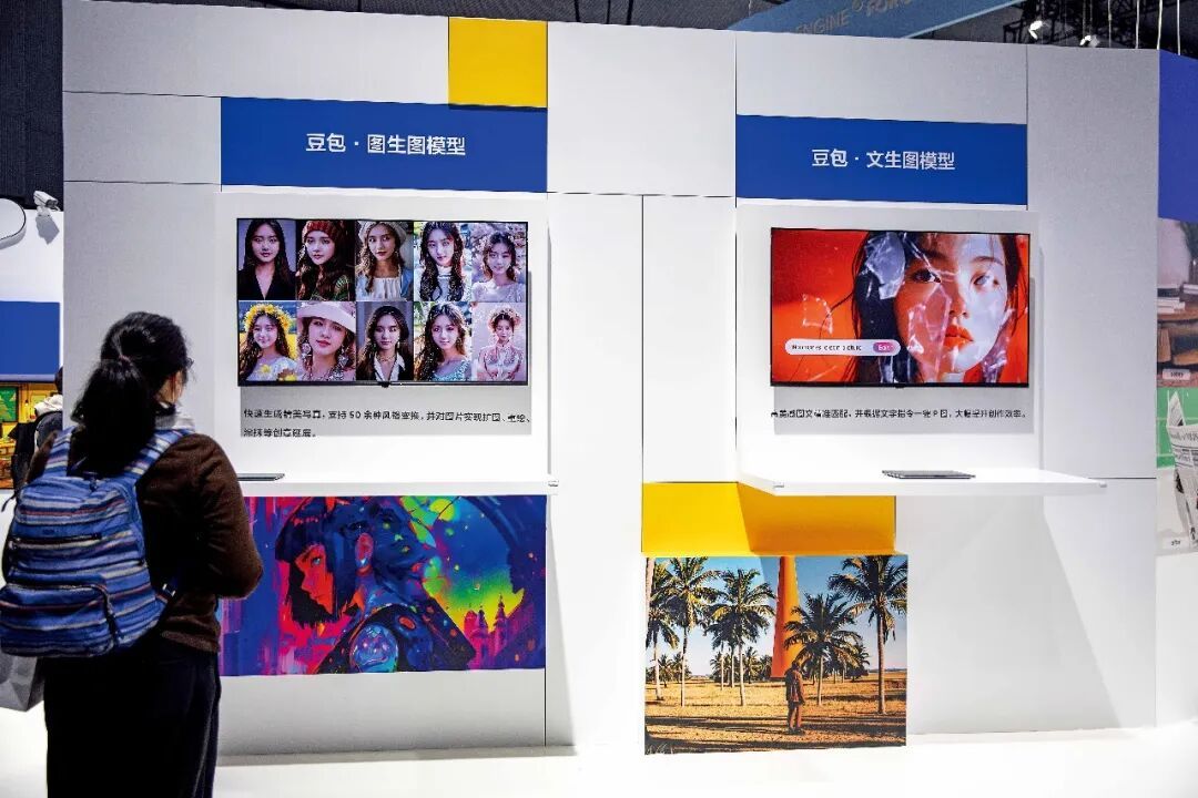 中图:2024年12月18日,2024火山引擎冬季FORCE原动大会期间的豆包图生图模型、文生图模型展区。图/IC