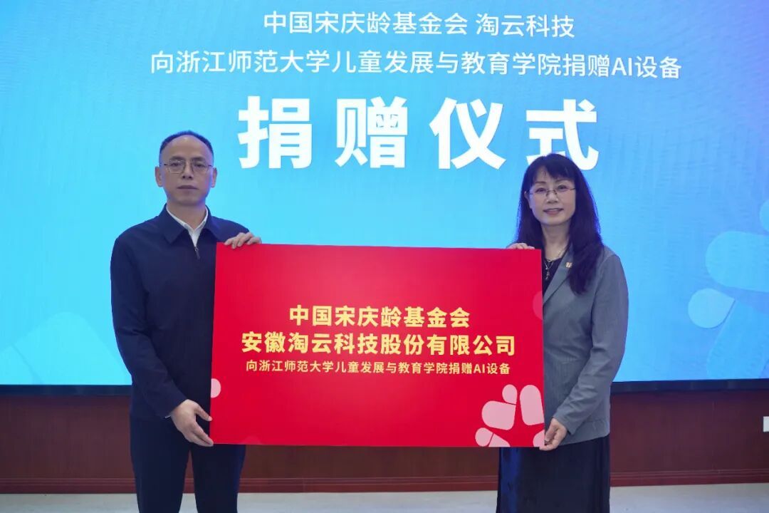 当日,在浙江师范大学萧山校区举行的捐赠仪式上,中国宋庆龄基金会、淘云科技向浙江师范大学儿童发展与教育学院捐赠AI设备。