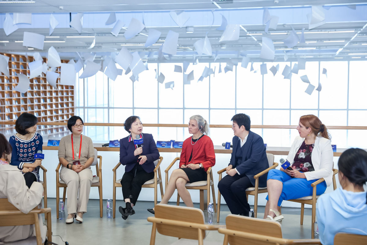 寄语过后,科技女生们以分组的形式上台汇报学习成果。现场嘉宾们聆听着台上女生们的认真汇报,也不禁想起了年轻时的自己,各自分享了科研成长路上的“关键时刻”。陈赛娟回忆了在早期科研中如何不畏艰难,勉励女生以兴趣为起点,敢于迎难而上,“面对当年国内细胞分子生物学研究刚起步的现状,我们团队始终努力创新,在白血病研究领域取得了很多收获”。卡洛琳·卢格分享了自己与科研结缘的“心动时刻”,“我在和科学女生差不多年纪时,意识到课本中的知识也是由你我一样的平凡人创造的,而我们可以依靠自己的力量,为科研难题找到答案”。舒庆艳讲述了对科研保持热爱的“空杯心态”,“我始终把自己当成一个小学生,这使我能够对科研保有长期的好奇心”。陈雯分享了海外求学经历带来的重要影响,“人在异乡时,外界的期望和压力都会弱化,你需要直面自己,找寻内心真正的渴望”。而宁克·范德马雷尔不仅回顾了自己的科研经历,更鼓励年轻一代与优秀的前辈导师同行,“作为导师,我们由衷地希望青年科研者获得更大的突破”。