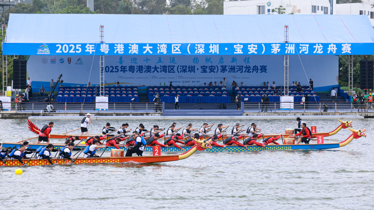 在“赛时服务赛事,赛后服务民生”理念下,宝安区各项体育设施实现“赛后就近”惠民。图为茅洲河水上运动场地举办湾区龙舟赛。(宝安区委宣传部供图)