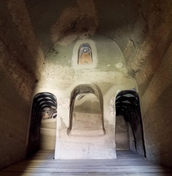 克孜尔石窟第178窟的壁画被揭取一空,几乎成为裸窟。图/赵莉供