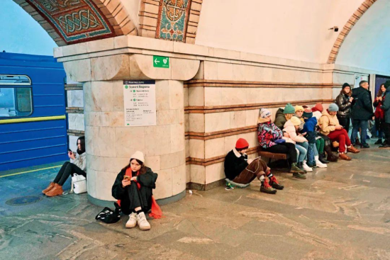 2022年12月31日,乌克兰基辅,空袭期间,地铁站内成了人们的避难所。图/视觉中国