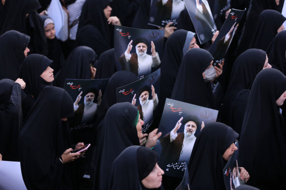 5月20日,伊朗首都德黑兰,一些民众在广场聚集,对伊朗总统莱希、外长阿卜杜拉希扬等高级官员在直升机事故中罹难表示哀悼。图/视觉中国