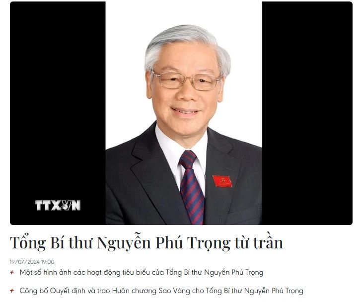 据越通社7月19日报道,越南共产党中央委员会总书记阮富仲,“在一段时间患重病,尽管已获得党、国家的关怀,接受各位一流专家教授和医生的精心治疗,家人的精心照顾,但因年老、病重,医治无效,阮富仲同志于2024年7月19日13时38分在第108号军队中央医院逝世,享年80岁。”