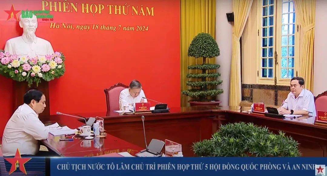 7月18日上午,苏林在主席府主持了国防安全委员会会议,这也是他首次以国家主席身份主持召开国防安全委员会会议。政府总理范明政、国会主席陈青敏出席会议。其中,陈青敏也是在今年5月刚刚上任。