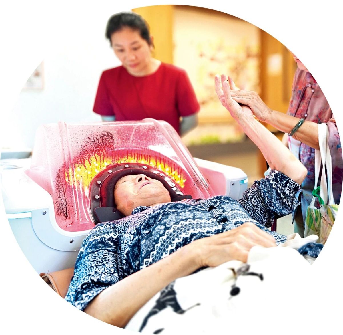 在深圳市养老护理院,智能洗头机器人成了“明星设备”,每天都有老人排队预约。图/受访者提供