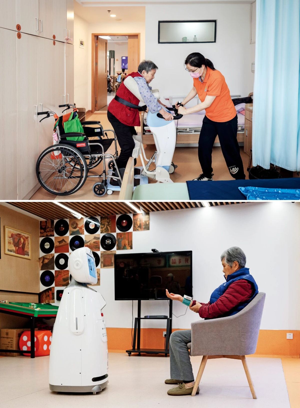 在深圳市养护院,理疗室有AI康复治疗机器人,机器臂扫描身体后,能快速定位,给老人按摩、艾灸。李锡坡曾在一个图书馆看到一款下棋机器人,会下象棋、围棋,内置数百种棋谱,他也引进到养护院,有老人每天午休都要和它对弈几盘。