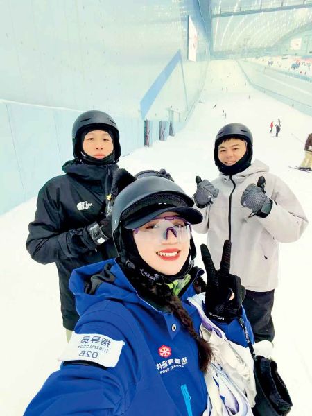 那时的她不会想到,雪场会主动南下,来到她的“家门口”。2025年,她成为深圳最大室内雪场的一名单板滑雪教练,已经有数百名来自广东、港澳台地区乃至海外的学员,在她的指导下第一次学会推坡、转弯。