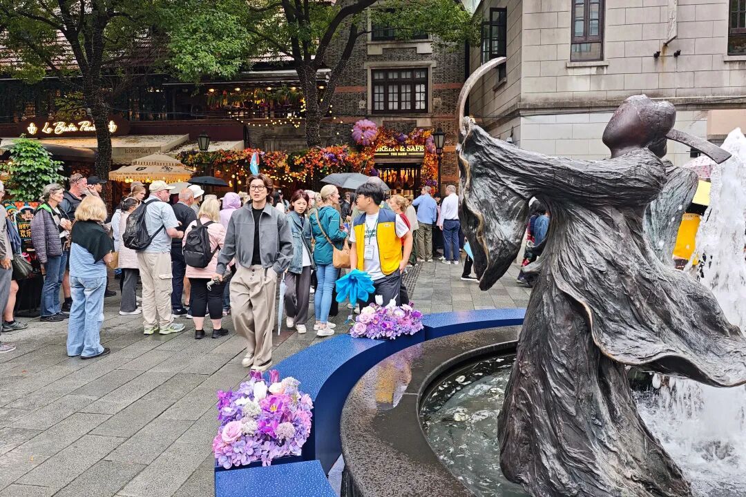 上海黄浦区新天地街头,众多外国游客正在观光游览。中新社发 王冈 摄