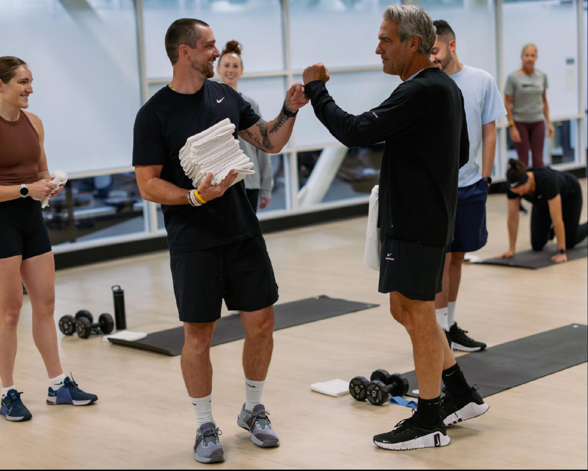 周二清晨,秋意清冽,位于俄勒冈州比弗顿的菲利普·H·奈特园区,耐克员工们在天光微露前陆续抵达,有人在绕园区慢跑,有人在健身房里举重训练。在耐克体育中心健身房的4号训练室中,大约二十人正在为早上7点的高强度间歇训练(HIIT)课程做热身。