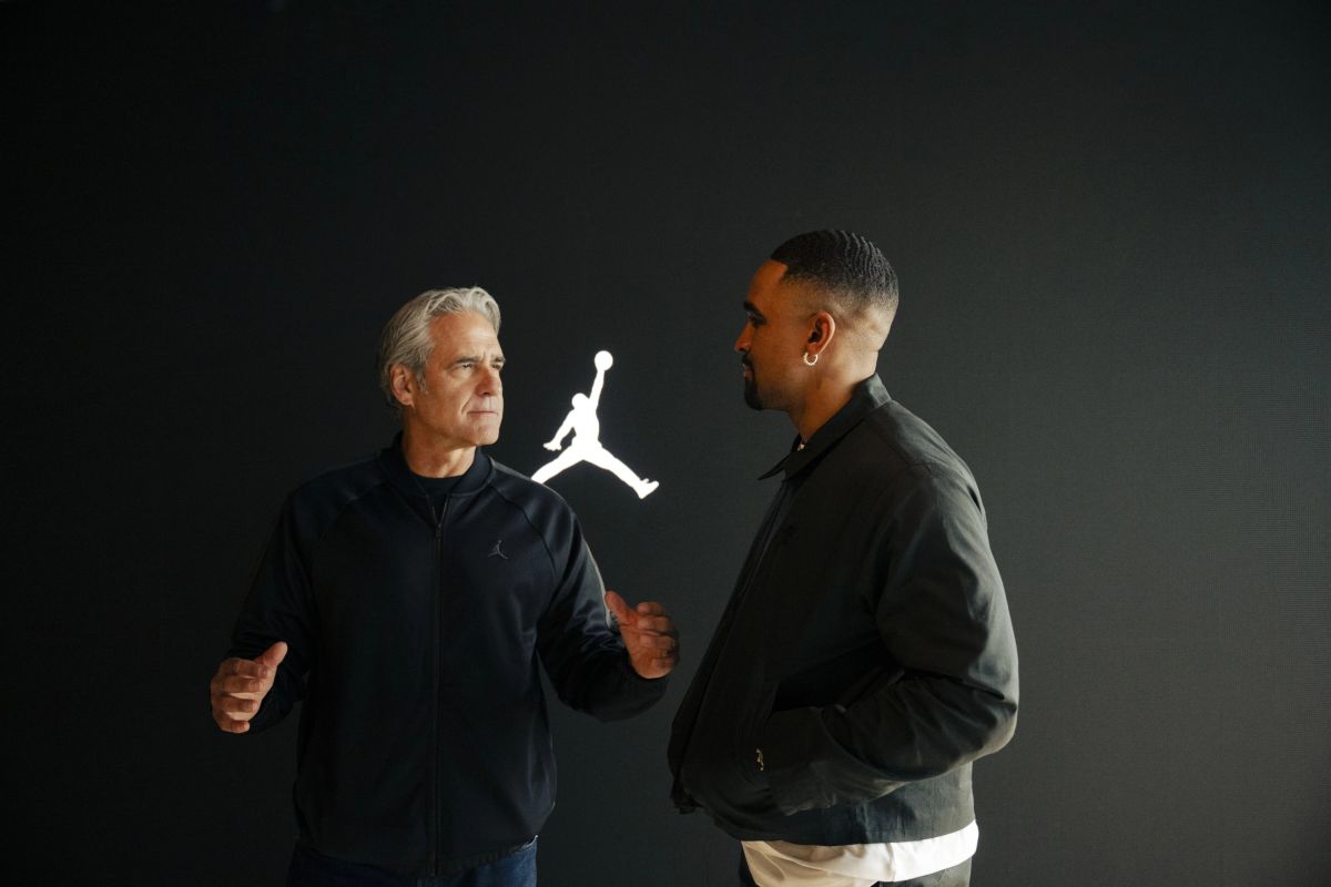贺雁峰与Jordan品牌签约运动员杰伦·赫茨(Jalen Hurts)合影留念。去年冬天,耐克为这位四分卫支付了因穿着颜色不符规定的Jordan 11橄榄球鞋上场而产生的罚金,贺雁峰称这是“耐克回归”的典型例子。