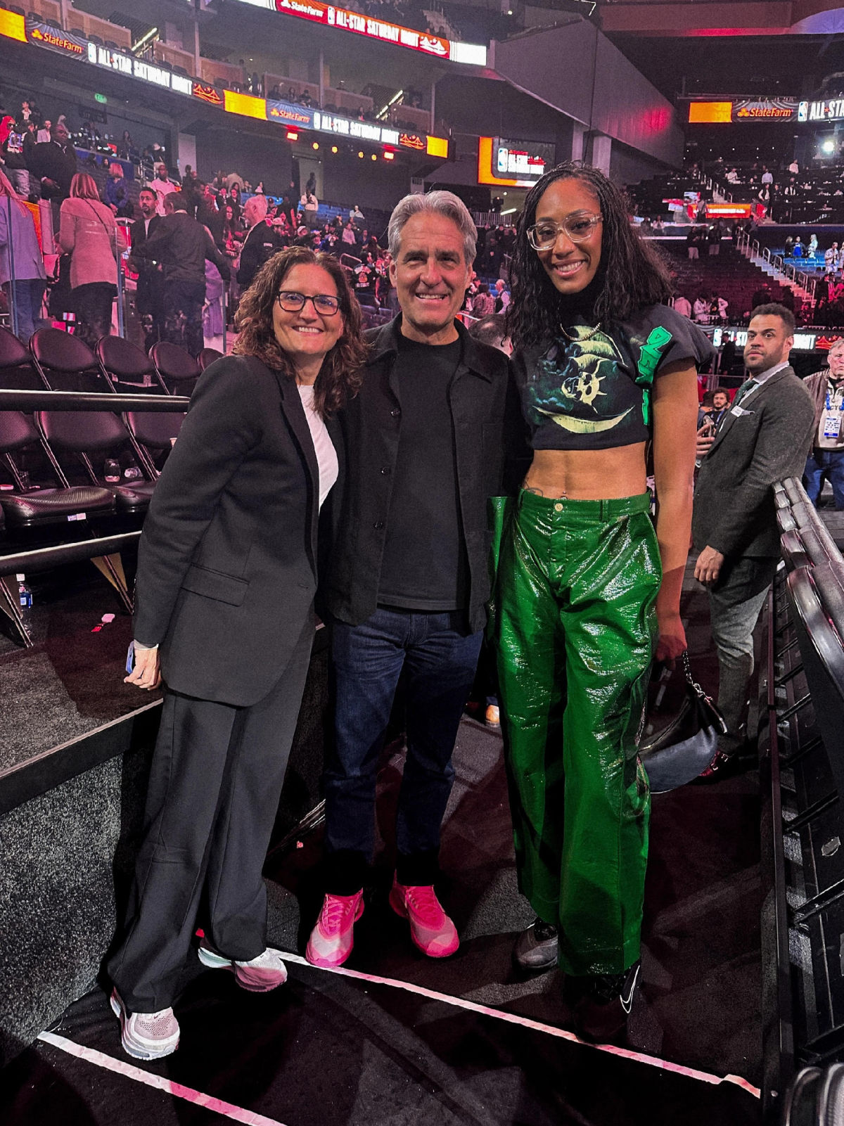 耐克全球体育营销执行副总裁安·米勒(Ann Miller)、贺雁峰与三届WNBA冠军、耐克签约运动员阿贾·威尔逊(A’ja Wilson)。