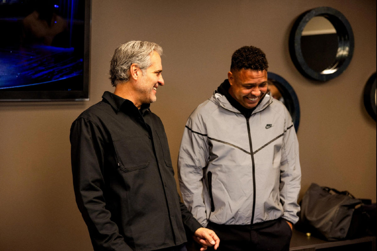 去年夏天,贺雁峰在园区与传奇球星罗纳尔多(Ronaldo)相聚。