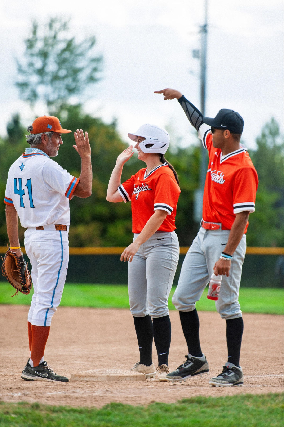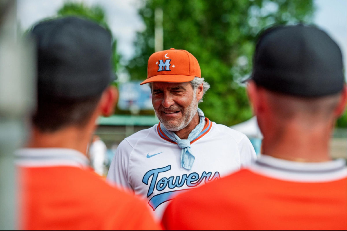 与员工共同参与并庆祝运动,是贺雁峰工作中的重要一环。图为他参加今年夏天举行的一场棒球友谊赛,对阵双方为耐克员工队(Nike Knights)以及他所在的Austin Moontowers队。
