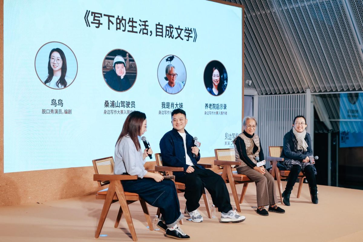 开幕式上,来自广西桂北小镇70岁的肖大妹登上舞台,用一口乡音读出自己的“一日”:“今天我五点半起床,抬起脑壳看天,云淡星稀是个好天气。”这位在缝纫机上写作的七旬老太,磨了一辈子豆腐,退休后开始用文字、绘画记录自己的一生,花五年时间从田间走到文学领奖台,斩获本届身边写作大赛“评委大奖”。