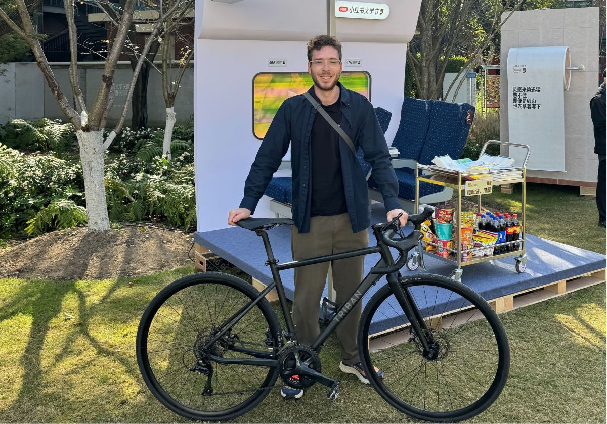 30岁的英国小伙儿Ben Silver 半年前从伦敦出发,骑行前往中国,并开始在小红书上发布他的骑行日记,其中一篇《比骑行万里更难的,是辞职离开那刻》入围本届身边写作大赛。当天,Ben Silver骑车抵达鲁迅公园,被网友称为“有史以来最松弛的文学奖得主”。