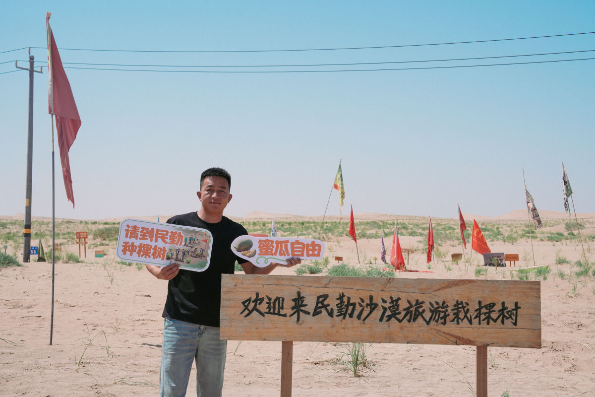 在仲麟的记忆深处,童年是无尽的黄沙和清甜的瓜香交织在一起的。小时候,他常与妈妈一起去卖瓜,风沙吹得人睁不开眼,嘴里却是一口甜润。2020年,大学毕业后的仲麟选择返乡创业。他意识到,“治沙总要有人去做,如果不治沙造林,我们的庄稼就不会有好收成,我们的家园就不会有好环境”。