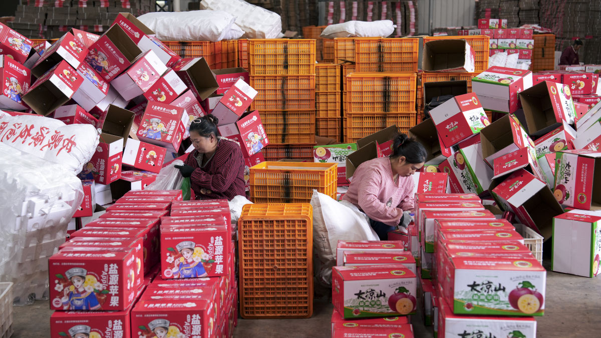 盐源县果农正在打包苹果