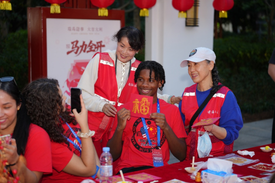 然而,真正的“重头戏”在赛场之外。南山区营造了美国学生们体验中国春节的沉浸式场景:他们走进摩肩接踵的迎春花市,被各色年花和寓意吉祥的装饰所吸引;他们踏入前海社区的党群服务中心,在社区居民手把手的指导下,第一次尝试用红纸和剪刀创作出略显笨拙却充满诚意的窗花;他们手握毛笔,在红色的对联纸上写下“福”字与“春回大地”,尽管笔画稚嫩,但那份专注与尝试,让围观的中外师生和居民报以热烈的掌声。