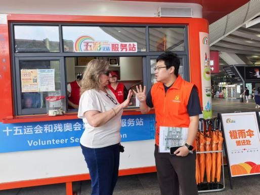 例如,红色“服务站”是信息与沟通的枢纽。北站设有1个迎春花咨询服务台和4个志愿服务U站,构成红色服务网络。这里是旅客寻求帮助的第一触点,提供车次查询、路线指引、秩序维护、手机充电乃至帮助寻亲等基础服务。其亮点在于国际化服务的嵌入:一批掌握英、日、韩、法等语种的志愿者活跃其中,为外国旅客消除语言障碍,使这个国内枢纽也具备了清晰的国际表达能力,红色由此象征着开放与热情。