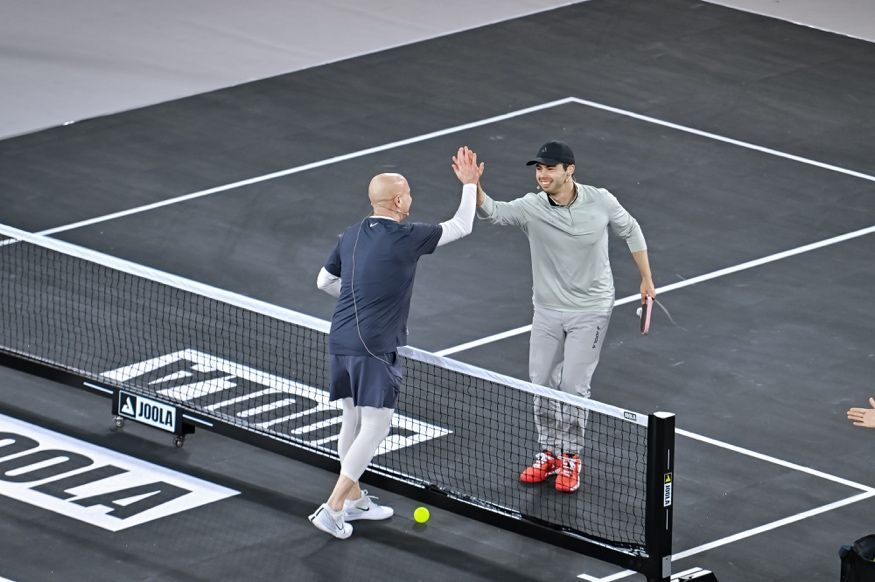 中国网球运动员王蔷与排球运动员杨家兴搭档出战混双。杨家兴幽默地表示:“我只练了40分钟匹克球,就开始了自己的处女秀。”王蔷也直观地给出反馈:“非常好玩,很享受,也很容易上手。”这种来自职业运动员的即时体验,也为现场观众提供了一个更易理解的参照。