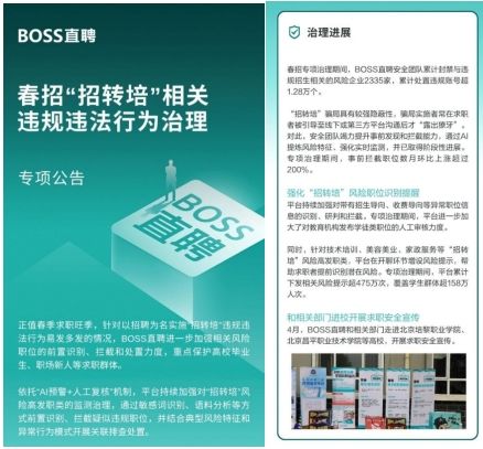BOSS直聘发布春招“招转培”专项治理进展:累计封禁违规账号超1.28万个