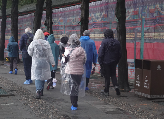 2025年10月9日,北京颐和园内中外游客穿冬装游览。图/视觉中国