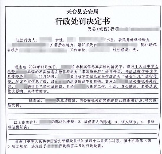 2024年12月1日,何某某报案。同月24日,天台县公安局对林淼作出行政处罚决定,其依据为治安管理处罚法中关于“公然侮辱他人或者捏造事实诽谤他人”的规定。与林淼一同参与讨论的张敏和陈慧兰,分别被处以行政拘留2日和4日,其中后者因怀孕未被执行。在三人之中,仅林淼提起行政诉讼。