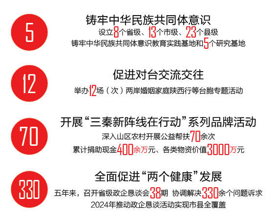 “十四五”以来,陕西省深入贯彻习近平总书记关于做好新时代党的统一战线工作的重要思想和历次赴陕西考察重要讲话重要指示精神,凝心聚力,锐意进取,为谱写陕西高质量发展崭新篇章汇聚了团结奋斗的强大合力。