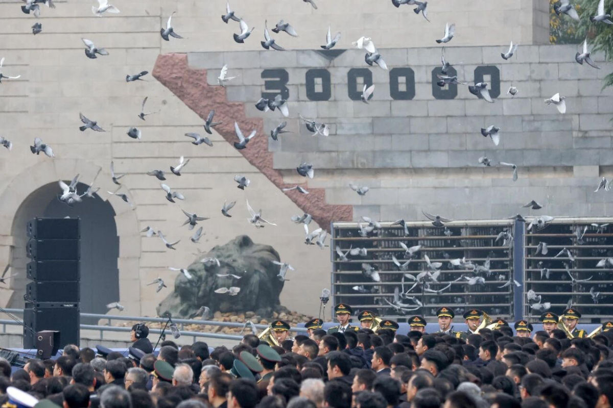 12月13日,江苏南京,南京大屠杀死难者国家公祭仪式现场。当日是第十二个南京大屠杀死难者国家公祭日,南京大屠杀死难者国家公祭仪式在侵华日军南京大屠杀遇难同胞纪念馆举行。 中新社记者 泱波 摄