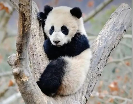 图片和视频中,浑身“黢黑”的大熊猫趴在树枝上,黑乎乎的模样与人们印象中黑白分明的大熊猫截然不同,俨然一副下矿挖煤后的模样。