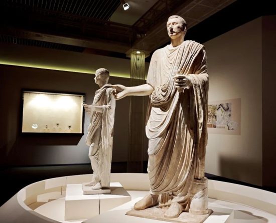 最高大的两尊雕像,是市政官形象,身材伟岸,穿着托加袍。宽大的托加袍,褶饰繁复、制作昂贵,且穿着不便,显然不适合体力劳动,穿着者多为财富充裕、享有崇高社会地位的阶层。