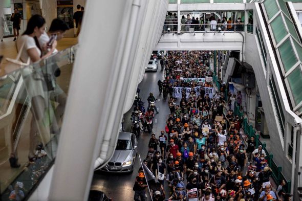 7月29日,泰国远进党的支持者在曼谷举行抗议。图/视觉中国