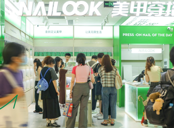 有着绿色门头的“NAILOOK美甲穿搭”穿戴甲连锁店已经开进了上海、杭州、成都等商圈,品牌理念旨在让女孩们把美甲与当日穿搭风格和场景结合。