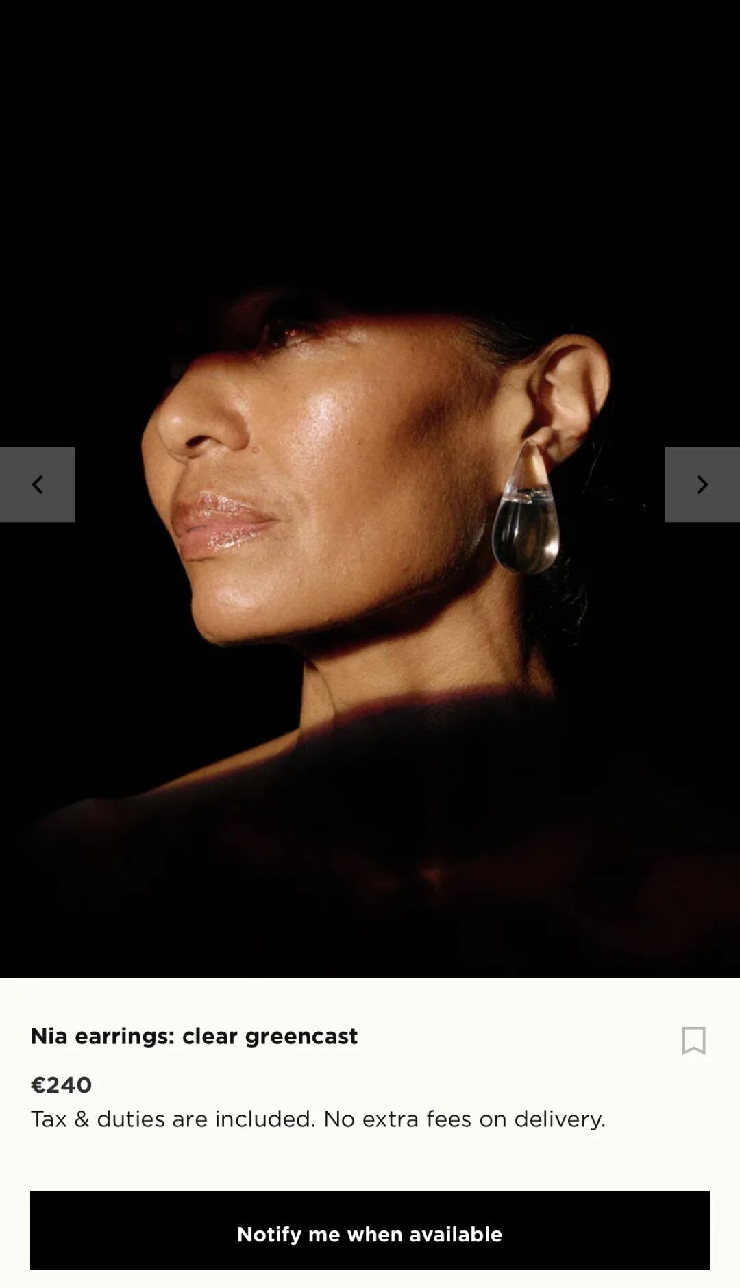 Monies官网信息显示,该耳饰售价240欧元(约合人民币1963元),重量36 g,长度5.2厘米,材质为丙烯酸。而丙烯酸是一种基础化工原料,其衍生物就是我们熟悉的树脂、亚克力。